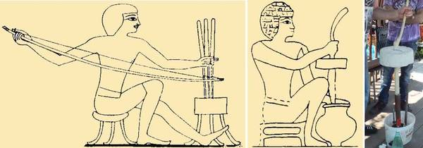 - на рисунке 5 мужик что-то держит над горшком. Зачем египтянам надо было выдалбливать и высверливать такие горшки из твёрдого камня, если они уже изобрели гончарный круг и лепили горшки?