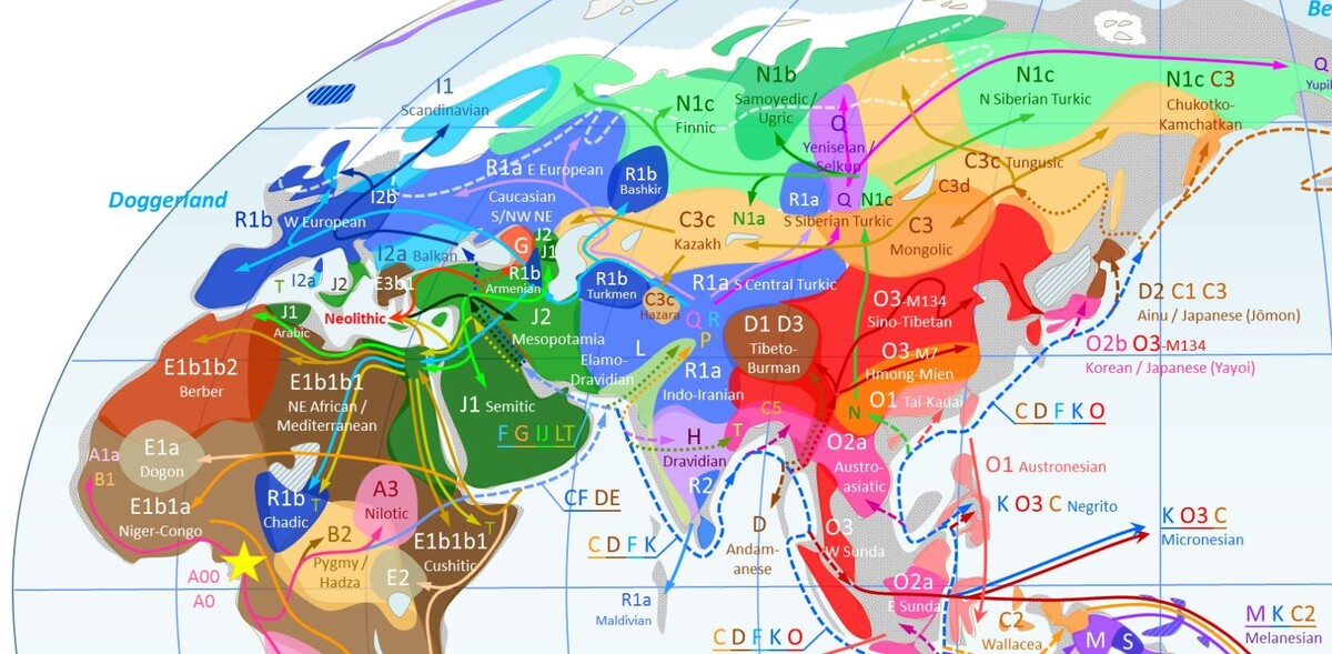 Лингвистические выводы ученых о том, что аринцы – это предки некоторых народов Северной Америки, подтверждает карта расселения народов по ДНК-генеалогии.