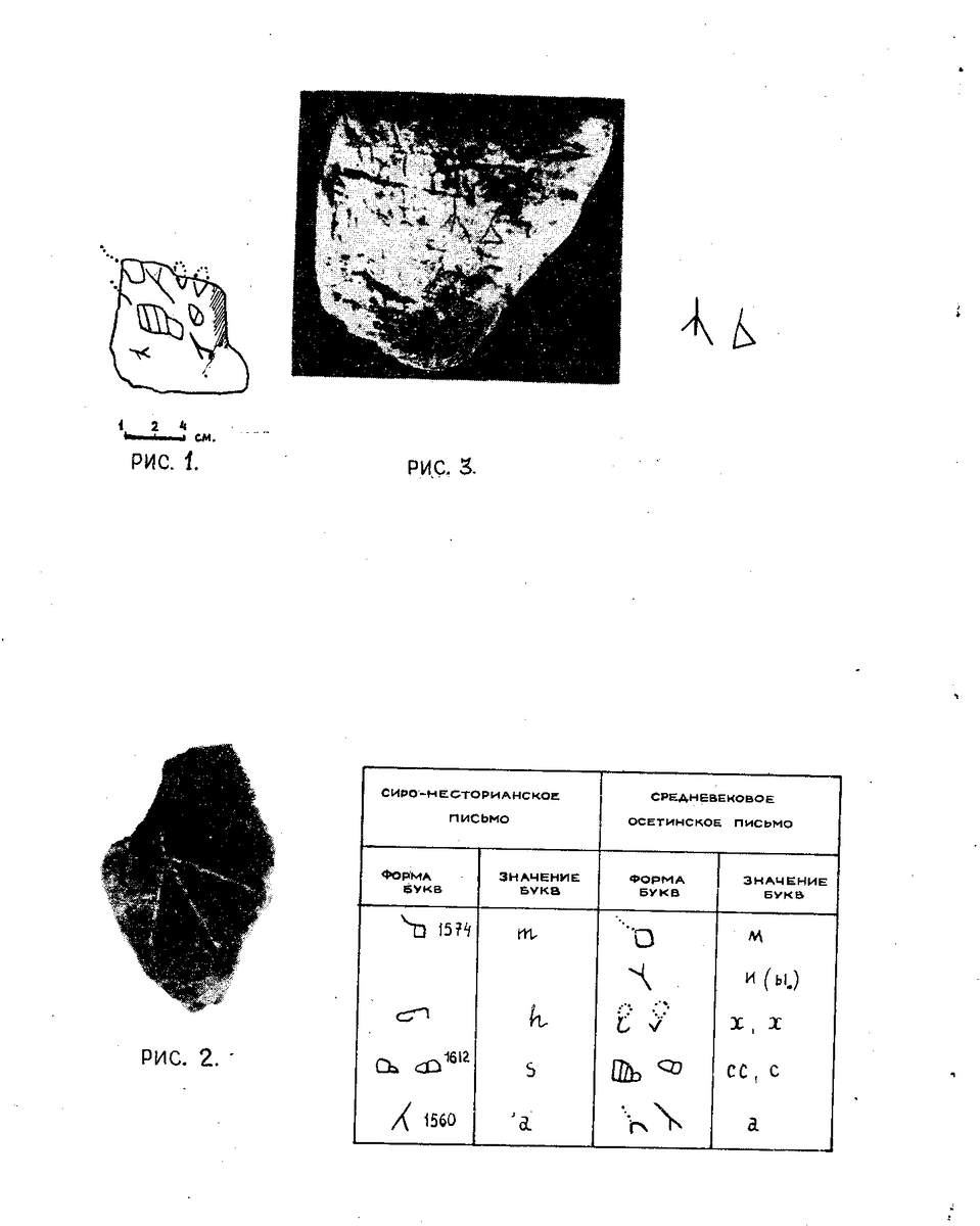 "...у Турчанинова почти в каждом очерке дана сводная таблица древнеосетинского алфавита, в которой написаны формы букв и их значение. Дан не весь алфавит.
